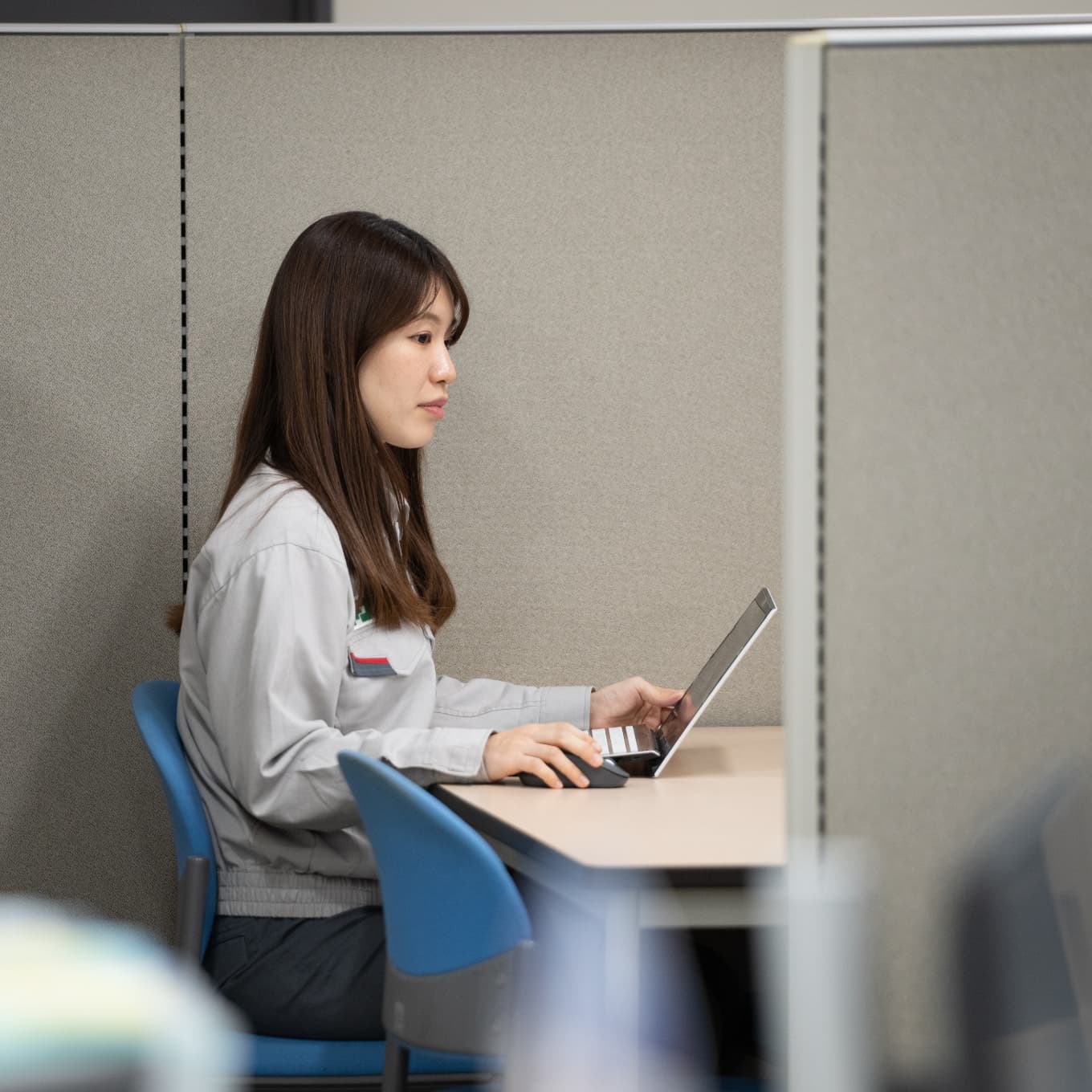 千葉工場の総務部には、総務と人事という二つのチームがあります。私が所属する人事チームは、その名のとおり、工場や研究所など千葉事業所における人事業務全般を担う部署です。事業所としての採用活動や異動、研修の企画・運用、勤怠・労務管理、人事制度や福利厚生制度の運用など、幅広い業務に携わっています。