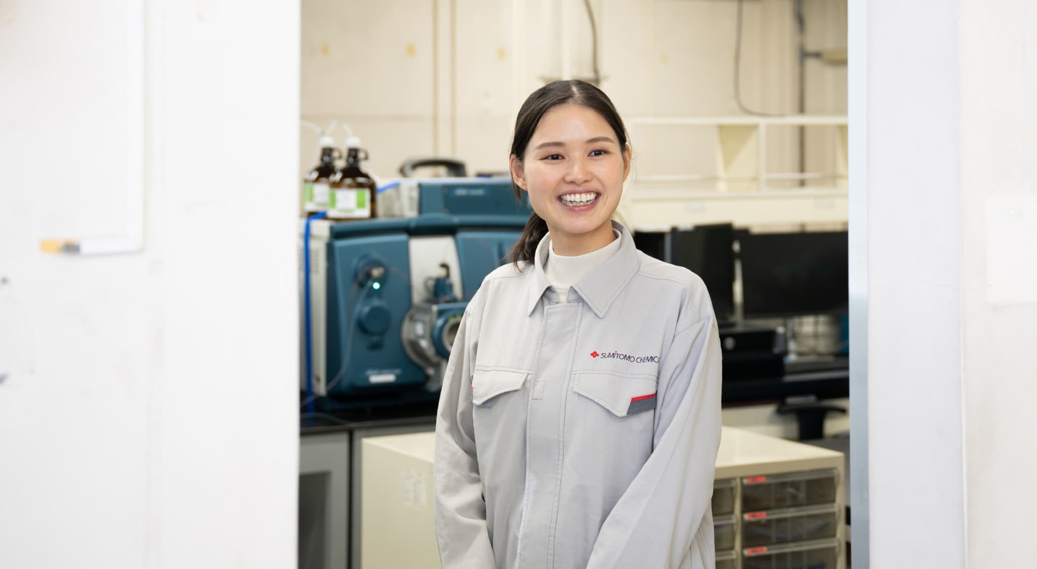 そして最後に、就職活動中の皆さんにお伝えしたいことがあります。住友化学は「ありのままのまじめさ」「コツコツと努力する姿勢」をしっかりと評価してくれる会社です。その根底には、目立たない業務や小さな仕事にも妥協せずに、きちんと取り組むという当社の文化があると感じています。