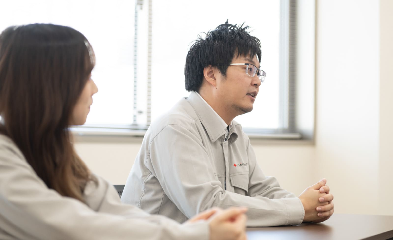さんに直接相談を持ちかけたりしています。開発や製造の現場が近く、同じチームのメンバーとして一体感を持って仕事に取り組めることは、事務系社員にとっても大きな魅力だと思いますね。