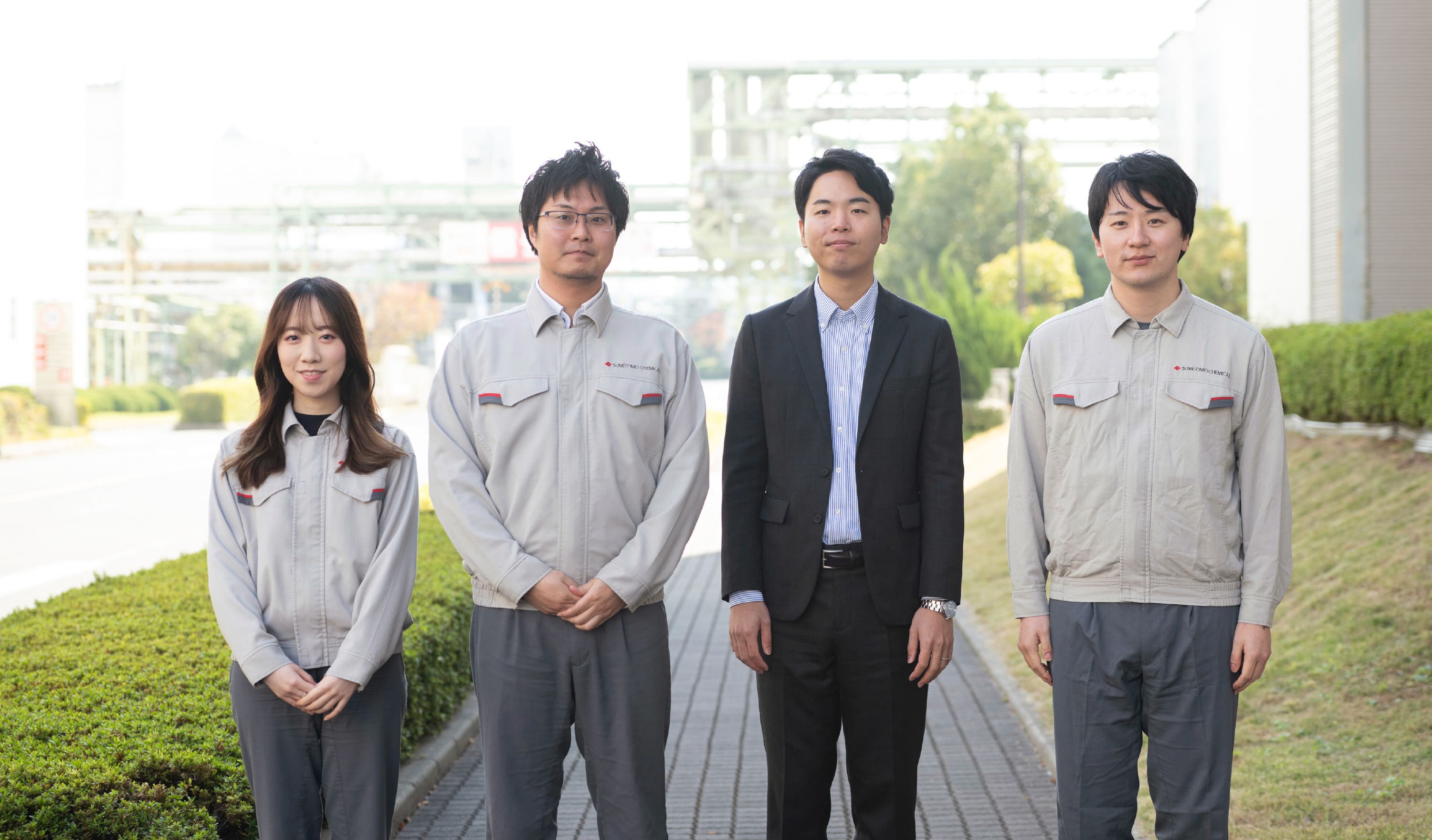 私は入社後、研究所で製造プロセスの開発に携わり、2022年に製造部に異動してきました。現在は、化学工学の知見を活かしつつ、ものづくりの現場に携われる仕事がとても楽しく、やりがいを感じています。私が所属する大阪工場は、半導体材料事業の中核となるマザー工場としての役割も担っています。製造ラインの自動化など、大阪工場でもまだまだ取り組むべきテーマは数多くあります。海外の製造拠点を牽引するような革新にチャレンジすると同時に、海外の拠点からも学び、事業部門全体の成長に貢献していきたいと思っています。